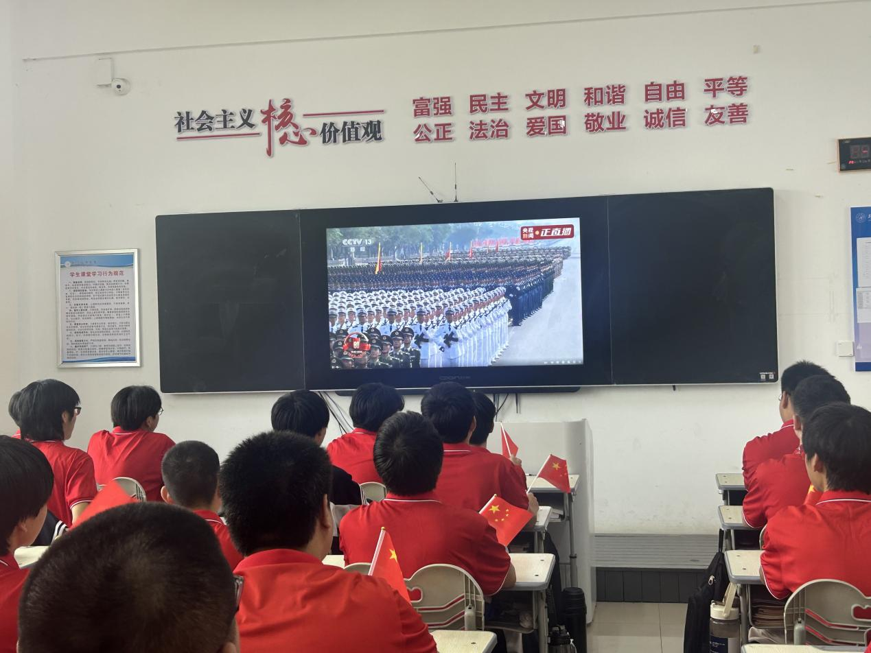 9月3日上午,学院组织全体师生集中观看纪念中国人民抗日战争暨世界反法西斯战争胜利80周年大会直播。在各班级教室,师生们庄严肃穆,认真聆听重要讲话,重温抗战历史,感悟伟大抗战精神。观看结束后,各班级组织开展"铭记历史,开创未来"主题讨论会,同学们踊跃发言,纷纷表示要将爱国情怀转化为学习动力,用技能报效祖国。