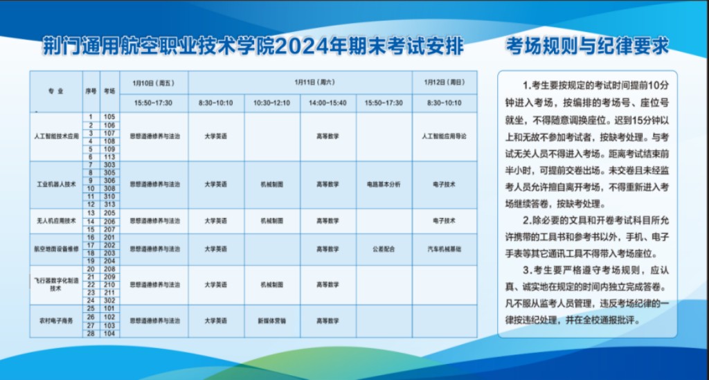 根据教学安排,我校于2025年1月10日至1月12日圆满完成2024秋季学期期末统一考试。