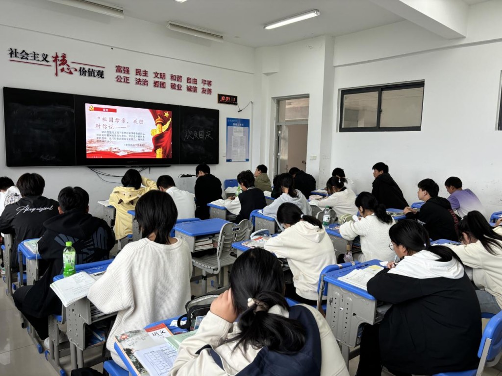 自9月17日筹备工作启动以来,校园里的爱国热情便持续升温。思政课堂上,教师们结合新中国发展历程与专业领域成就,生动讲解活动意义,引导学生将个人理想与祖国发展紧密相连;班会课上,班主任通过案例分享、小组讨论,帮助同学们梳理思路。不少学生早早开始构思寄语,有的反复修改措辞,有的精心设计手绘图案,只为让这份“写给祖国的信”更显真挚。9月25日至26日,工作人员紧锣密鼓地完成通航楼前广场展示墙的搭建,两块分别标注“祝福祖国”“专业担当”的展示区,静静等候着青春心声的“入驻”。