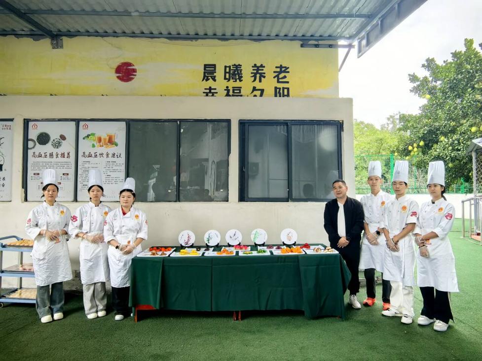 烹饪专业的学子们将课堂所学化作指尖的温度,精心烘焙出纸杯蛋糕、蛋挞、月饼,再搭配上新鲜果盘,每一份食物都饱含心意。活动现场,学生们以巧手演绎面点艺术,用果酱勾勒创意画卷——云朵般的蛋糕裱花轻盈舒展,飞机造型的果酱画跃然盘上,专业特色与节日趣味在餐盘中交织成诗。老人们品尝后纷纷称赞孩子们的手艺比外面买的还好!