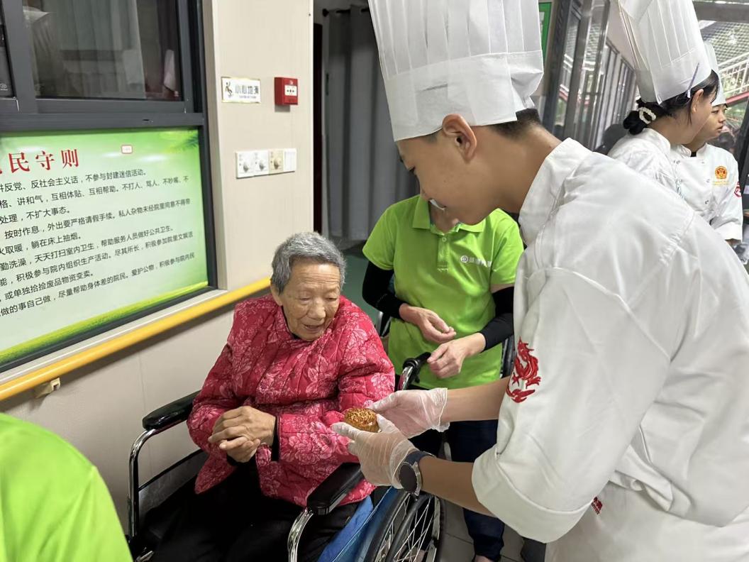 在此次“中秋送温暖”活动中,我校烹饪专业的学子们精心布置了一座雅致的面点展台。随着演出落幕,同学们亲切地为老人们细致讲解面点的制作工艺与技巧,并与他们展开了深入的交流。此次活动不仅为养老院的老人们带来了节日的暖意,更让同学们在实践过程中,对传统美德有了更深刻的领悟,同时提升了他们的社会服务意识。