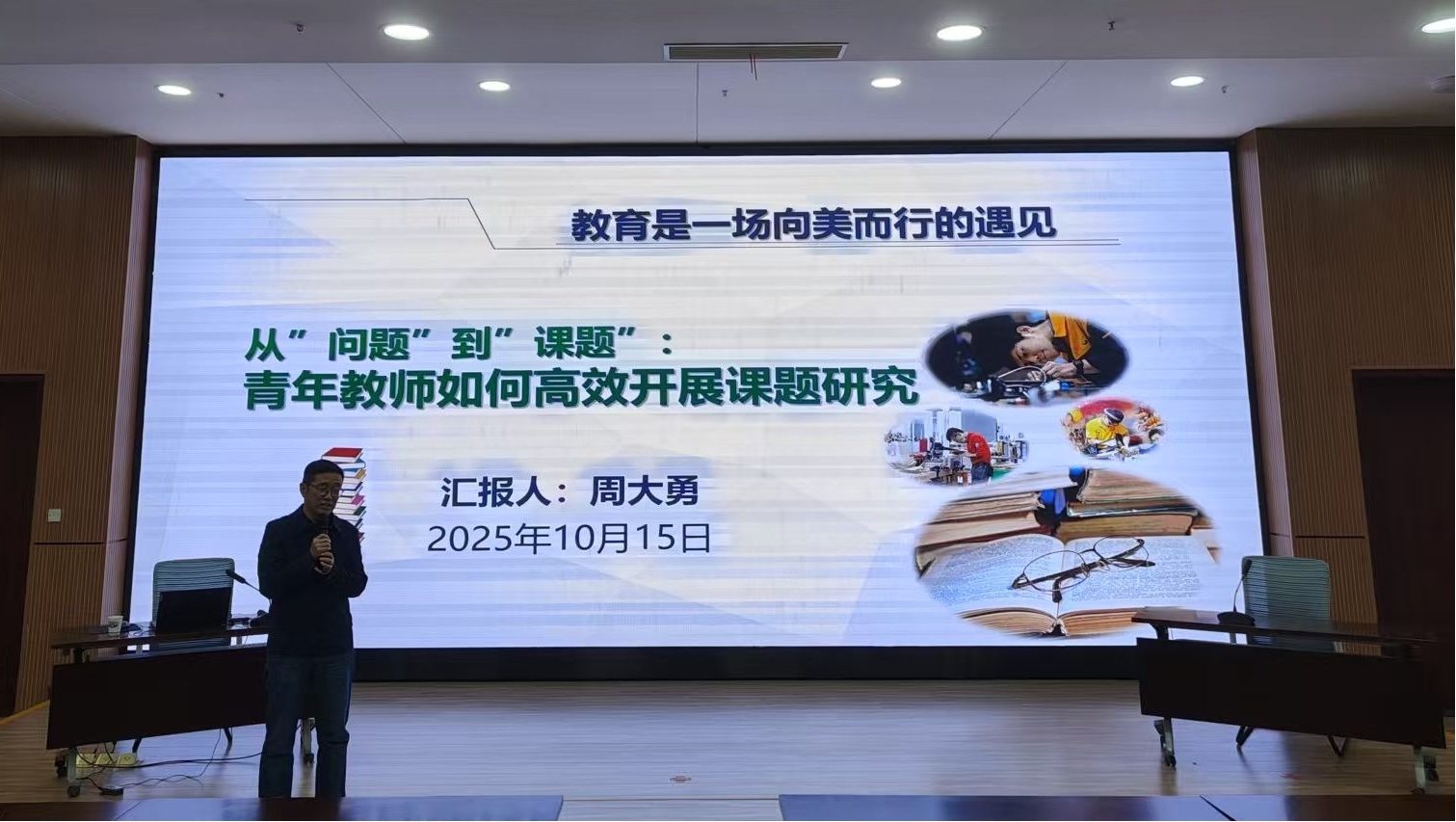 讲座伊始,周大勇校长开宗明义,指出“问题是科研的起点”,青年教师身处教学与管理一线,蕴藏着最鲜活、最真实的研究“富矿”。他强调,将日常工作中遇到的“真问题”转化为具有研究价值的“好课题”,是实现科研突破的关键第一步。
