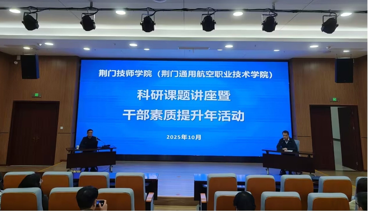 为系统提升青年教师的科研能力,夯实学校高质量发展的人才基础,2025年10月15日下午,荆门技师学院(荆门通用航空职业技术学院)在学院图书馆学术报告厅成功举办青年教师科研能力提升专题讲座暨干部素质提升年活动。此次活动邀请我校副院长周大勇同志为老师们开讲,科研处李赛松同志做科研工作报告。