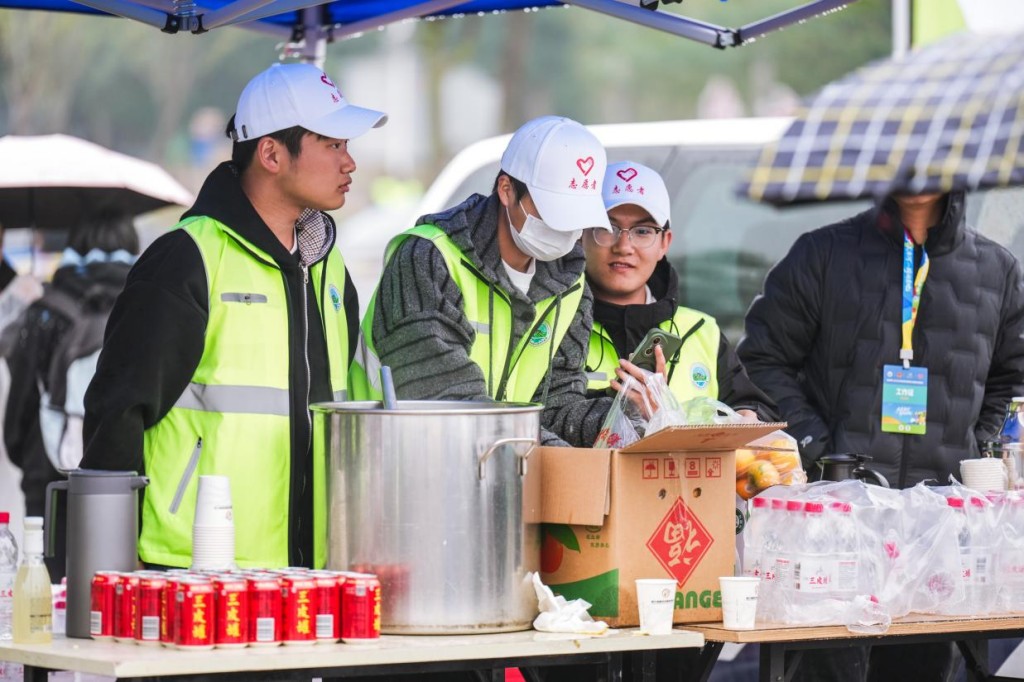赛事期间,志愿者团队以高度协作的精神投入工作。面对突降的小雨,各工作组迅速响应、有条不紊:综合协调组与志愿者服务组冒寒坚守岗位,热情细致地完成参赛人员及嘉宾的接待引导;现场秩序组快速到位,科学疏导人流,保障人员安全有序进场;竞赛组织组奔赴各关键点位,严格监督赛事流程,维护竞赛公平公正;后勤保障组24小时随时待命,精准高效完成物资调配与供应。此次赛事涵盖业余组与职业组两个选手组别,志愿者们全程高效完成赛程保障、赛后人员疏导及物资补给等工作。即便面临雨中作业、就地简餐等考验,他们始终保持饱满热情与专注态度,用实际行动助力赛事圆满落幕。