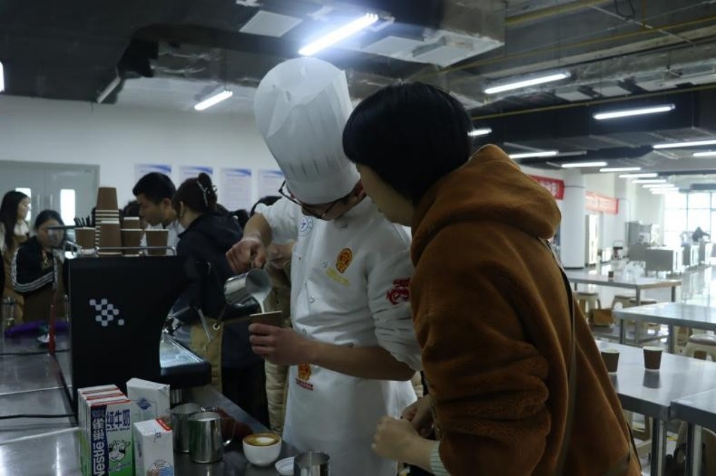 活动以“咖啡文化”与“烘焙艺术”为主线展开,在咖啡品鉴环节,专业教师生动讲解了咖啡豆的产地分类、研磨技巧及手冲咖啡的仪式感,并现场演示了拉花艺术。为让参与者沉浸式体验技能的魅力,学院特别设置“手作实践”环节。身着围裙的女职工们在师生指导下,从研磨咖啡豆到烘焙甜点,从调配原料到装饰成型,从生疏到熟练,每一份作品都凝聚着专注与创意,精巧的点心不仅承载着劳动成果的喜悦,更传递着对生活的热爱。大家感慨道:“平日工作节奏快,这次活动让我在动手实践中彻底放松,也感受到技能教育对生活美学的提升。”
