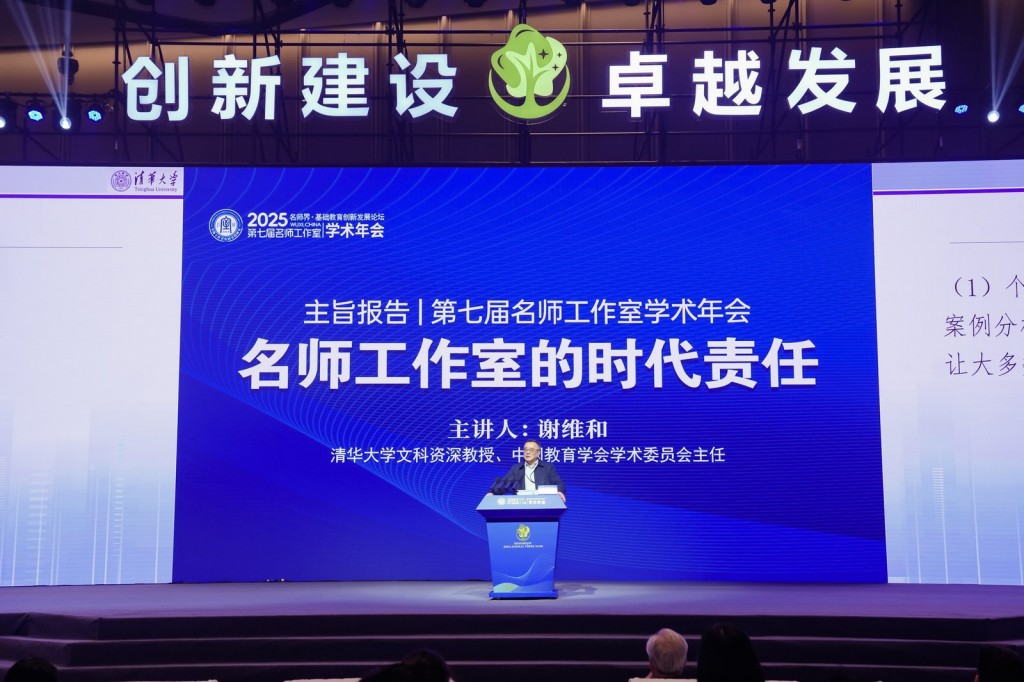 清华大学副校长,教育科学研究院院长谢维和作了题为《名师工作室的时代责任》的主旨报告。他指出,名师工作室在基础教育变革中具有领先示范作用;教育要让大多数学生成为优秀,要打破成见,要理清个性发展与全面发展的关系。