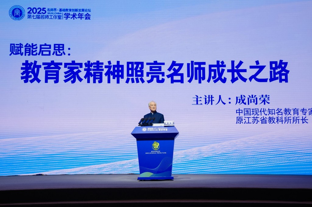 中国现代知名教育专家,原江苏教科所所长成尚荣先生作出名为《教育家精神照亮名师成长之路》的报告。成尚荣先生由毛泽东主席的《沁园春·长沙》引入,从教育家精神具有崇高的照耀性,引领名师做有追求的人;教育家精神的文化回溯,引领名师做时代的“士”;教育家精神的科学性,引领名师做“有真本领的人”;教育家生活的扎根性,引领名师成为热爱生活,做真实大写的人;教育家精神的风格多样性,引领名师成为合唱队中的领唱者五个方面详细阐述了名师成长的必经之路。