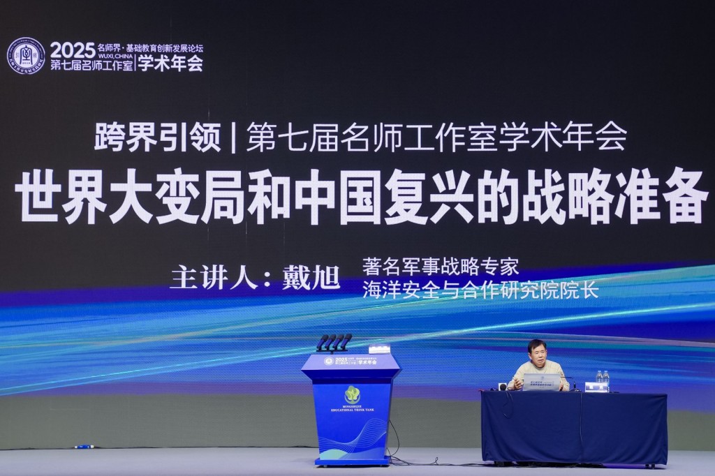 著名军事战略专家戴旭作以《世界大变局和中国复兴的战略准备》为题的报告,在百年未有之大变局背景下,中国教育工作者肩负着培养民族复兴时代新人的历史使命。教师作为战略人才的启蒙者与塑造者,在这个历史性交汇期,教师需要化身"战略播种者",将课堂教学转化为民族复兴的能量场。