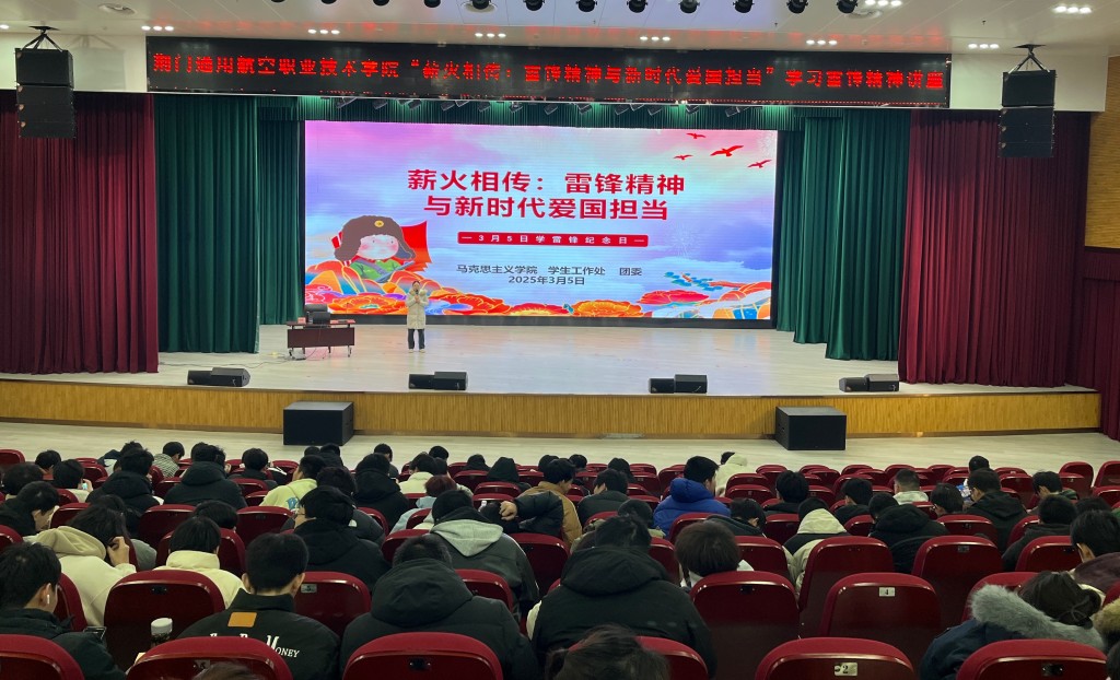 为引导广大师生深入学习雷锋精神,传承红色基因,激发爱国担当,为新时代的社会主义建设注入强大精神动力,2025年3月5日,荆门技师学院(荆门通用航空职业技术学院)马克思主义学院联合学生工作处、团委举办了一场主题为“薪火相传:雷锋精神与新时代爱国担当”的讲座。六百多名学生参与讲座。