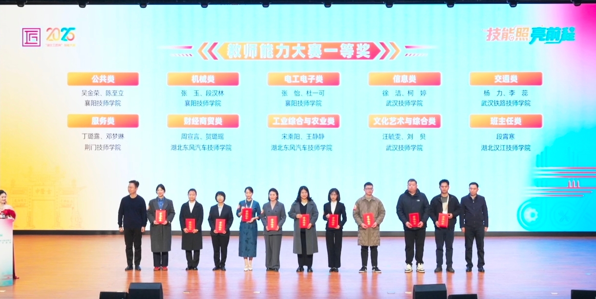 与此同时,在教师教学能力大赛的赛场上,荆门技师学院的教师们同样大放异彩。他们以巧妙的教学设计和生动的信息化手段,展现了“授人以渔”的深厚功底。在公共课、电工电子、信息、交通、服务、财经商贸、工业综合与农业、文化艺术与综合等8个大类别的比赛中,服务类的丁璐露、邓梦琳教师组合荣获一等奖,交通类的李琳玉、向容与信息类的成果、成妍教师组合则获得了三等奖。这些荣誉不仅是对教师个人能力的肯定,更是学院整体教学水平与创新实力的有力证明。