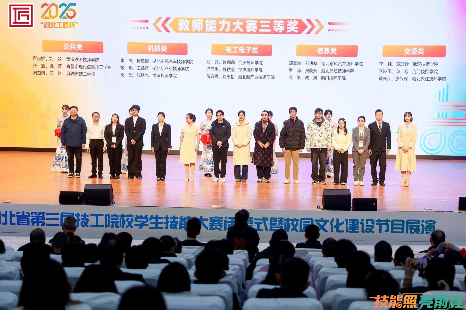 2025年12月4日至5日,一场汇聚全省技工精英的盛会——2025年湖北省第三届技工院校学生技能大赛暨第四届教师职业能力大赛在襄阳技师学院隆重举行。在这场以“技能照亮前程”为主题的竞技舞台上,荆门技师学院的师生代表团凭借精湛技艺与卓越风采,交出了一份令人瞩目的答卷。
