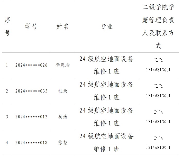 根据教育部《普通高等学校学生管理规定》(教育部令第41号)和《荆门通用航空职业技术学院学生学籍管理办法》要求,为确保学校教育教学工作的正常进行和学生管理的规范性,现将我校2025至2026学年度第二学期,开学后逾期未报到学生的退学处理情况公示如下: