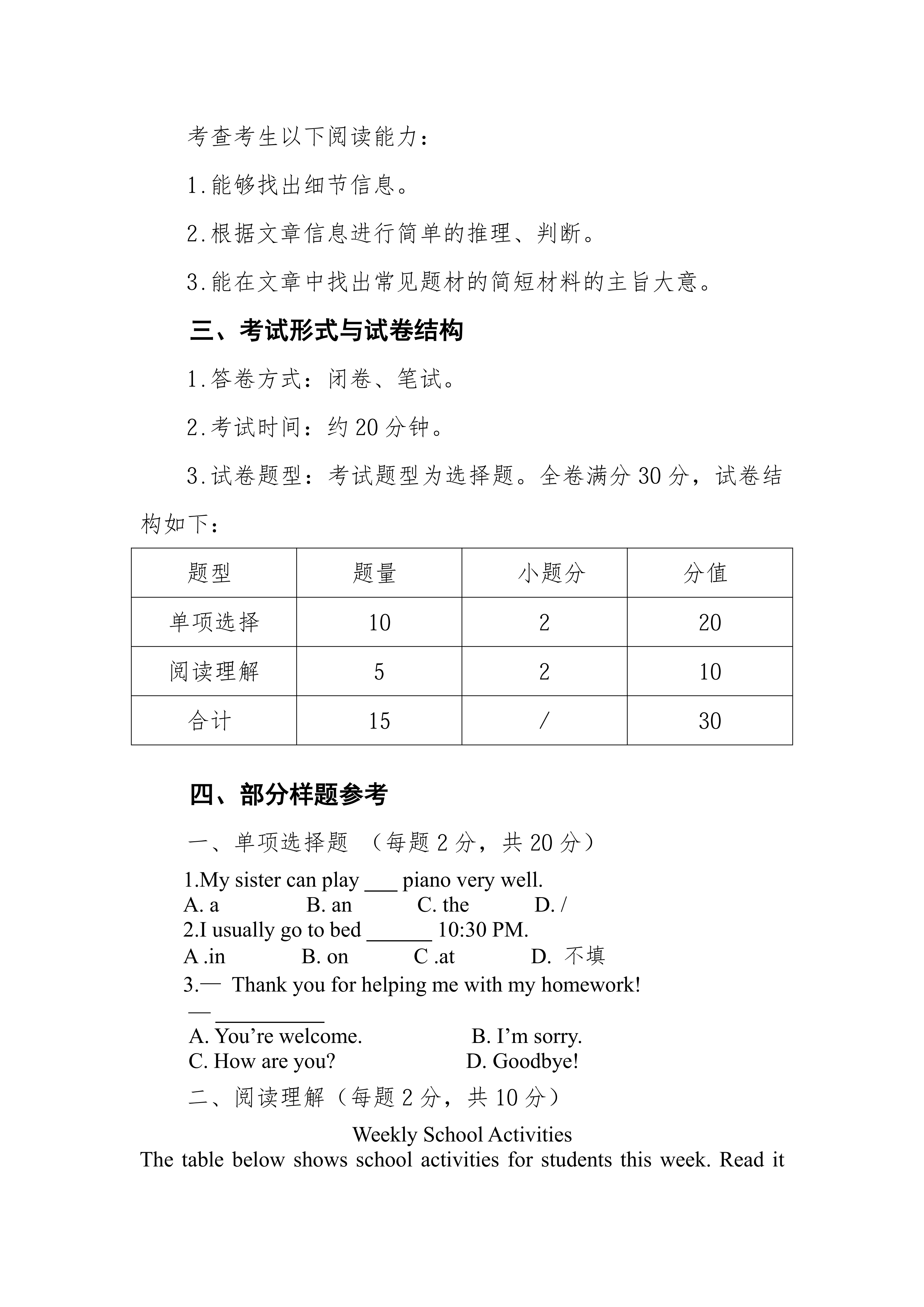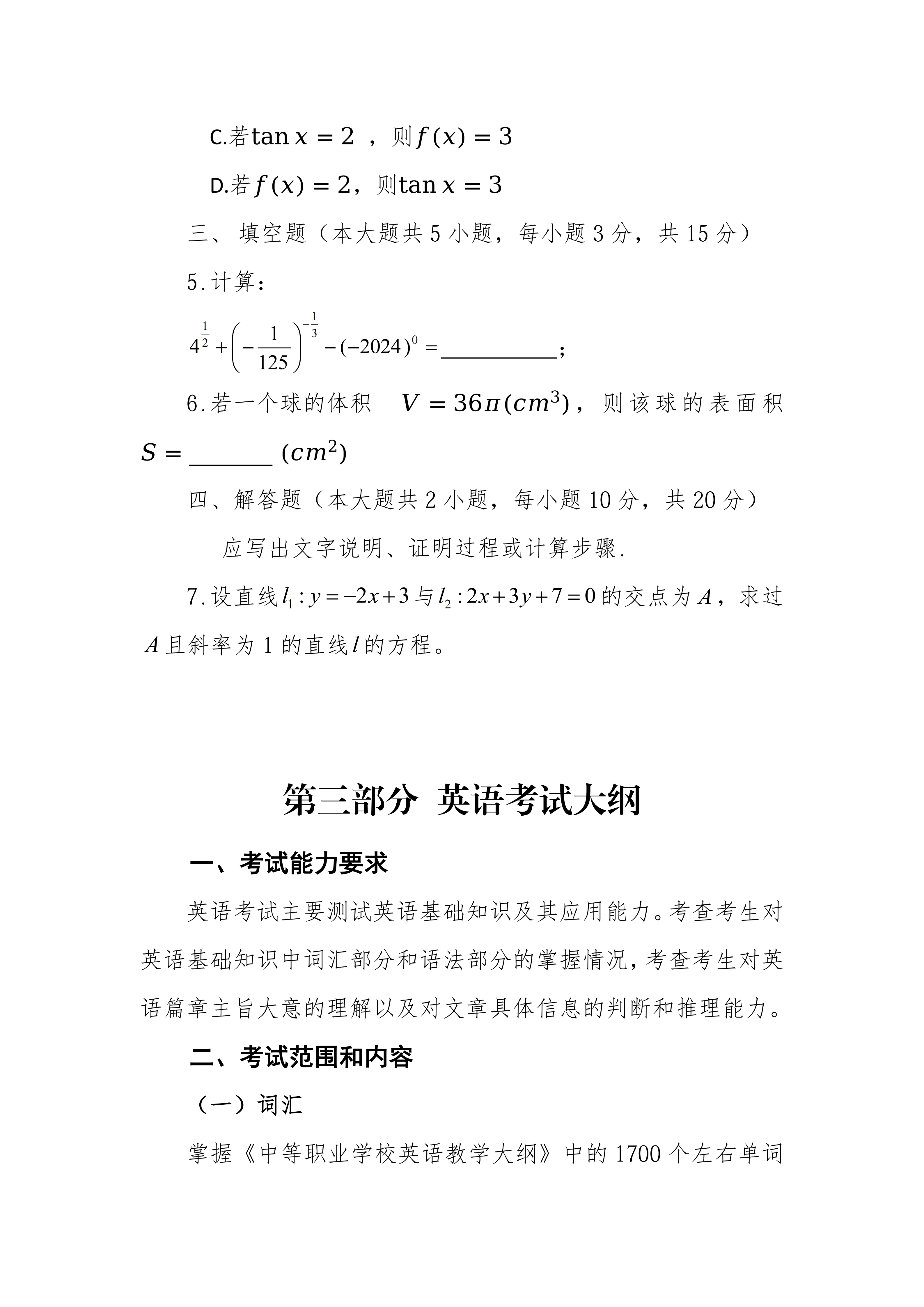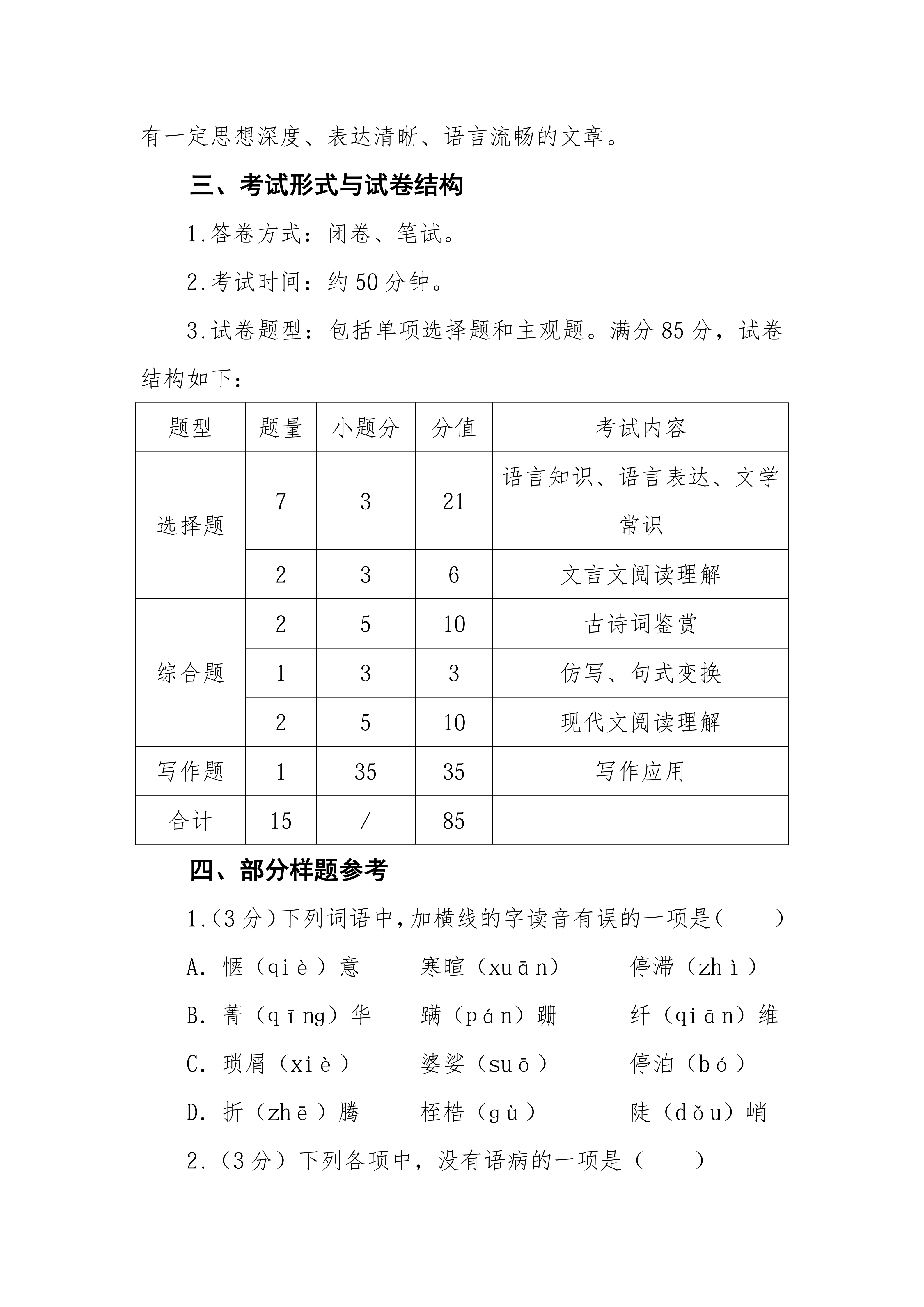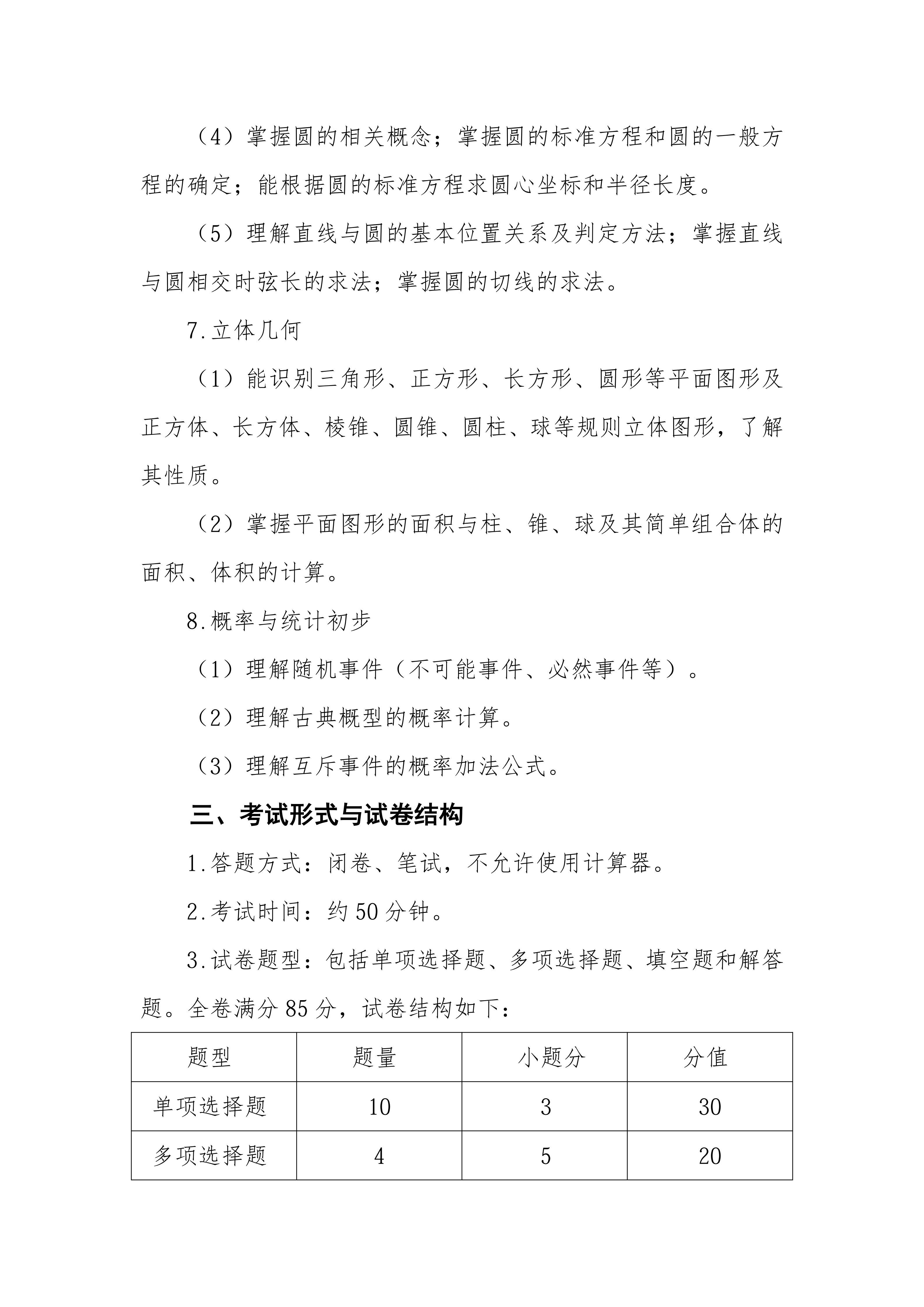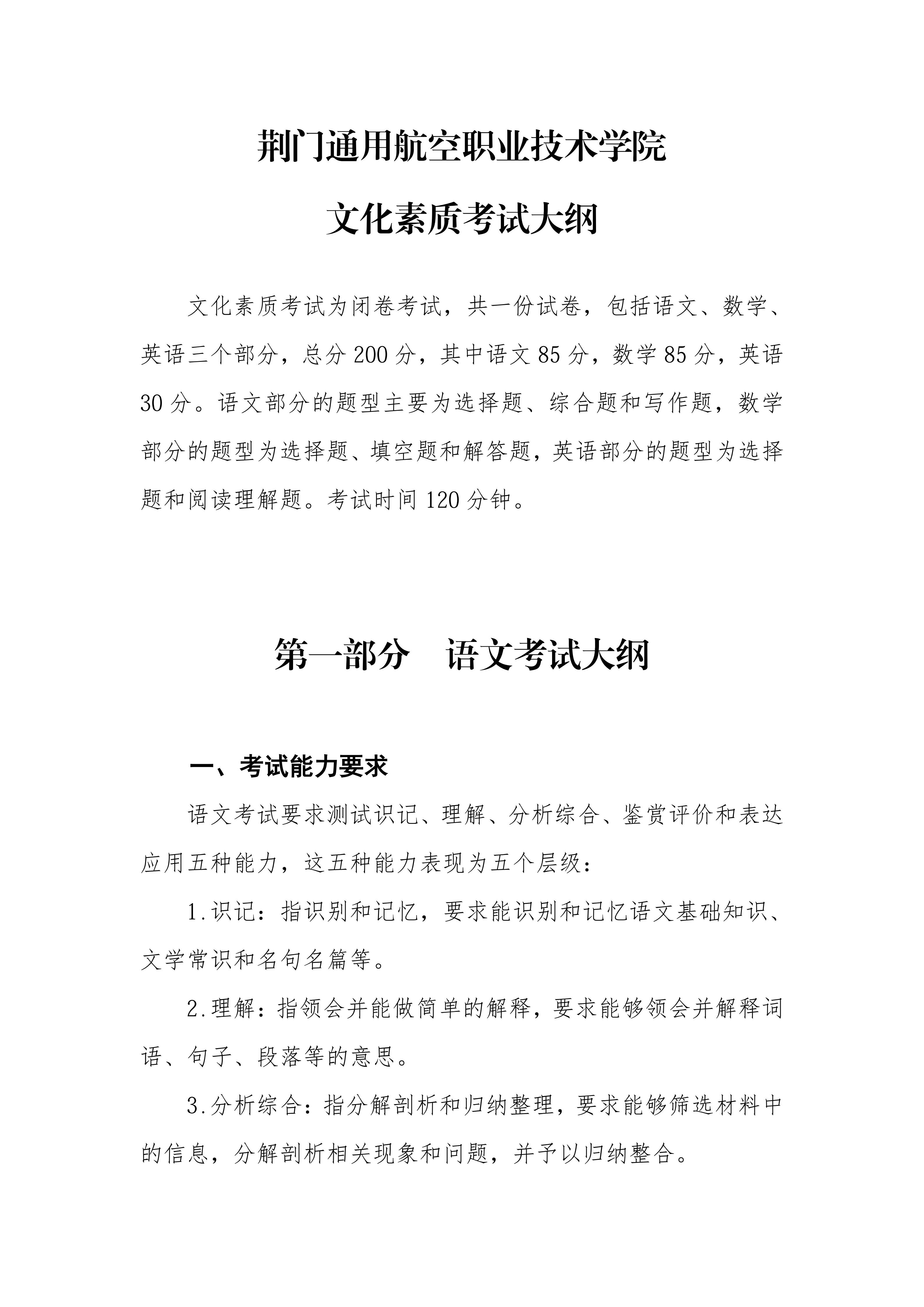 荆门通用航空职业技术学院 文化素质考试大纲