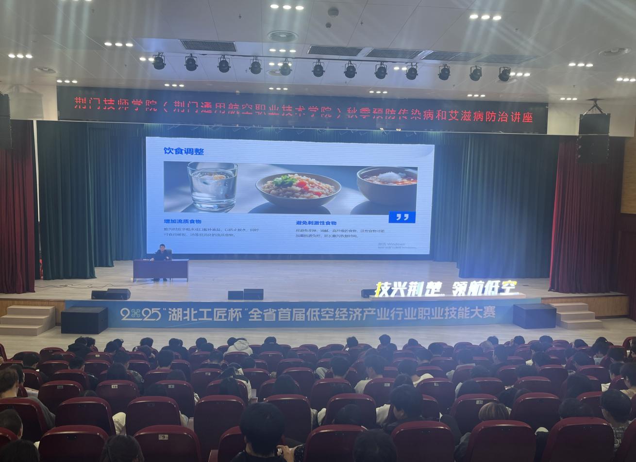 为强化师生感染性疾病认知,提升自我防护能力,筑牢校园健康安全屏障,10月29日下午,我校特邀荆门市中心医院感染科邱其武医生,举办“秋季预防传染病和艾滋病防治”专题讲座,全校师生代表现场参与学习。