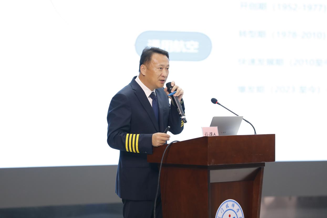 本次讲座特别邀请了行业专家——湖北鸿萌通用航空有限公司总经理徐君进行授课。徐君总经理作为我国民航系统一级飞行员,拥有二十二年的飞行教学经验,是一位资深的飞行教员。他在通用航空领域深耕多年,不仅具备精湛的飞行技术和扎实的专业知识,还积累了丰富的行业管理与人才培养经验。其授课内容融合了理论的高度与实践的深度,引发了全场师生的强烈共鸣。
