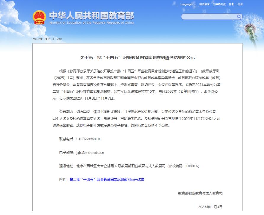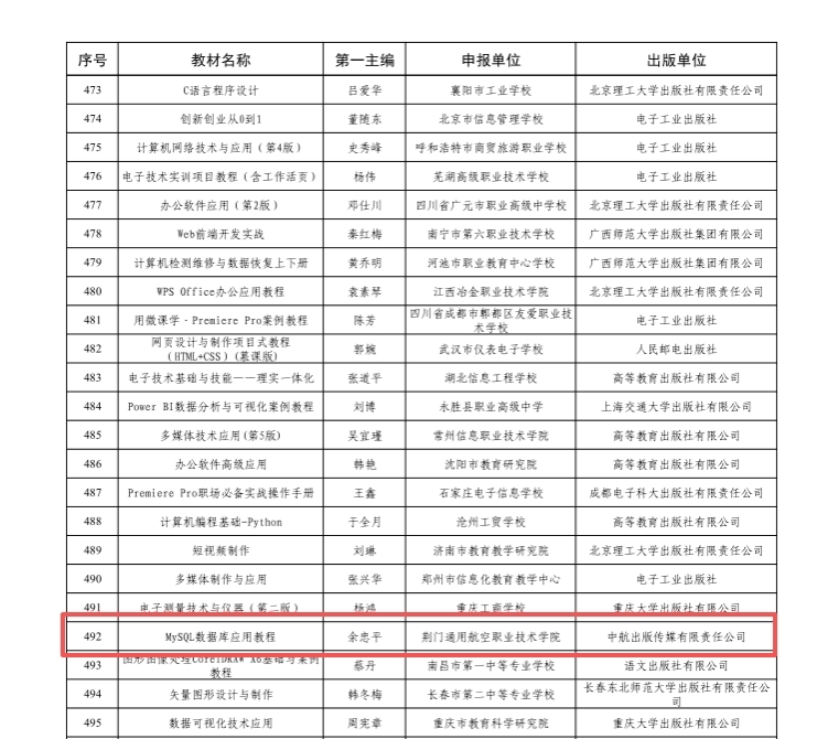 近日,教育部职业教育与成人教育司发布了《关于第二批“十四五”职业教育国家规划教材遴选结果的公示》,我院《MySQL数据库应用教程》教材成功入选。