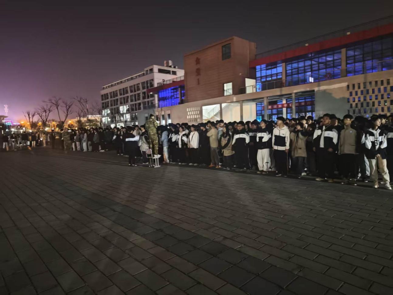 夜间是校园消防安全的关键时段,此次演练以真实火情为模拟场景,严格按照实战化标准推进。随着演练警报声发出,各班级师生迅速响应,在教官与班主任的引导下,用湿毛巾捂住口鼻、弯腰低姿,沿预定疏散路线快速、有序撤离至指定安全集合点,全程紧张有序、衔接高效,充分展现了师生良好的应急素养与协作能力。
