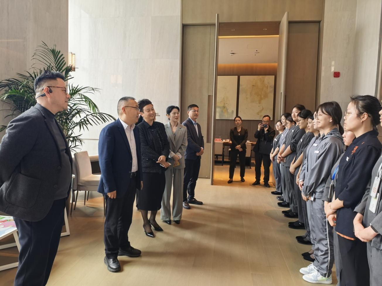 在荆门皇冠假日酒店,调研组重点了解实习学生岗位安排、技能成长及日常培养情况。酒店总经理徐雪平介绍,作为洲际集团旗下国际品牌酒店,该酒店对外语沟通、综合服务、职业素养要求较高。学院实习学生踏实肯干、进步明显,企业通过系统化培养、全过程跟踪,帮助学生快速提升实操能力,实习成效良好。校企双方就强化技能训练、优化外语教学、推进订单培养、建立常态化人才供给机制达成共识。